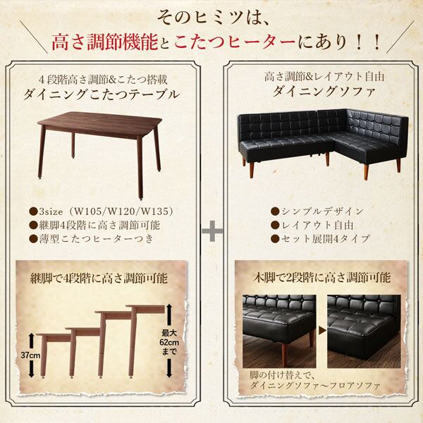 こたつもソファも高さ調節ヴィンテージリビングダイニング ダイニングこたつテーブル W105