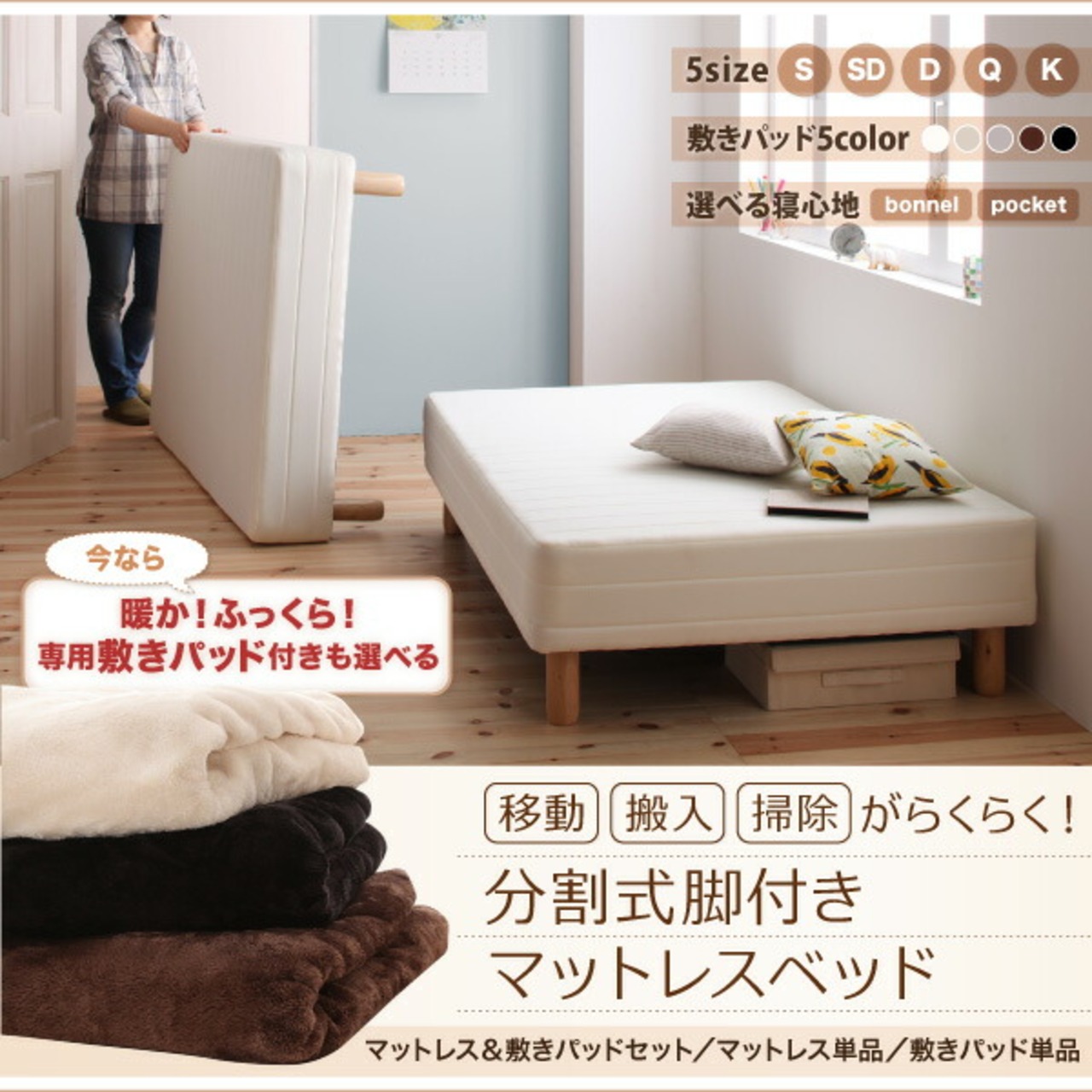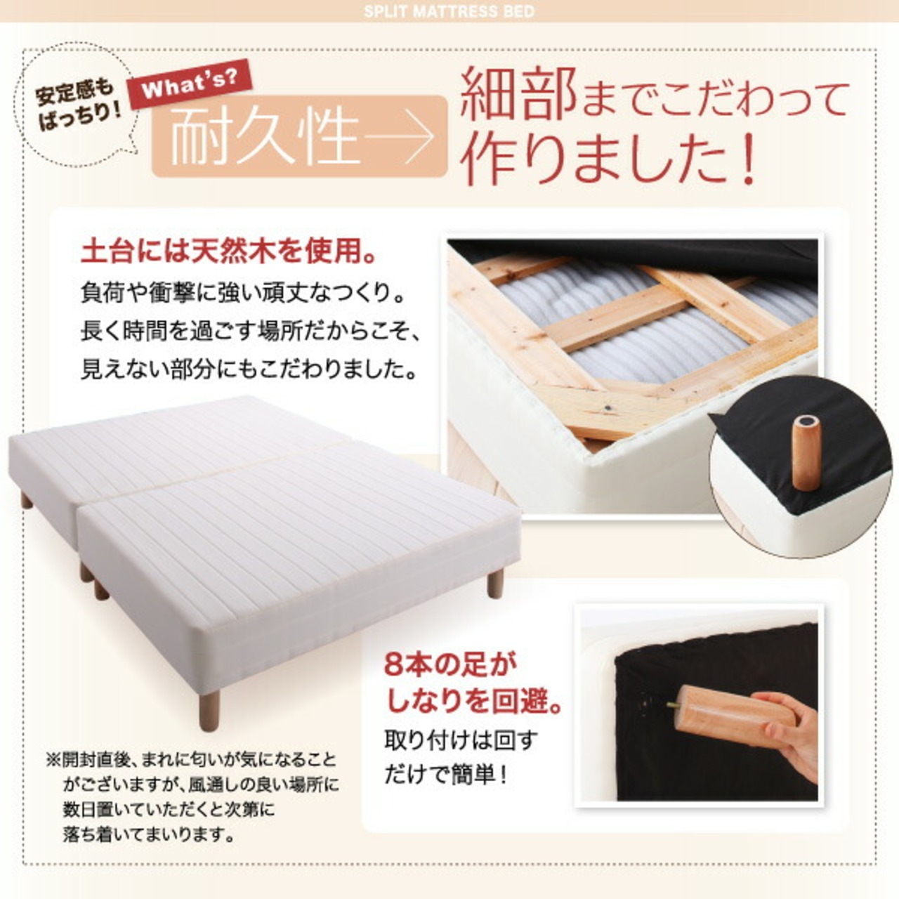 専用 敷きパッドが選べる 移動・搬入・掃除がらくらく 分割式脚付きマットレスベッド マットレスベッド ボンネルコイルマットレス 敷きパッドなし キング(SS+S)
