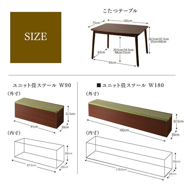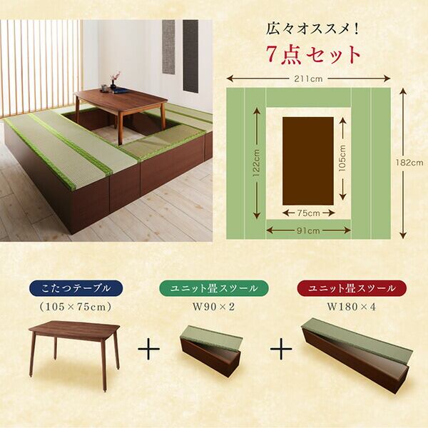 収納付きユニット畳掘りごたつシリーズ こたつテーブル 長方形(75×105cm)