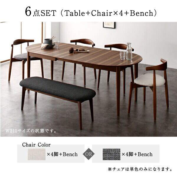 天然木ウォールナット伸長式オーバルデザイナーズダイニング ダイニングチェア 2脚組
