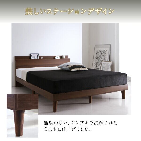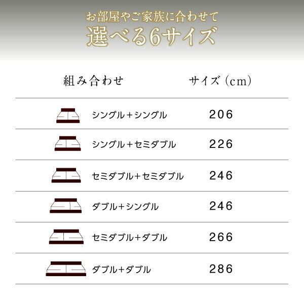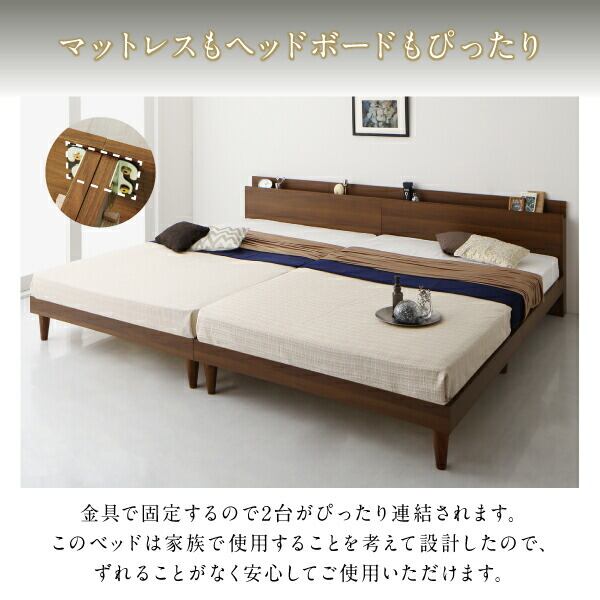 棚・コンセント付きツイン連結すのこベッド スタンダードポケットコイルマットレス付き ワイドK220