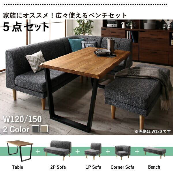 ダイニング4点セット(テーブル+2Pソファ1脚+1Pソファ1脚+コーナーソファ1脚) W150