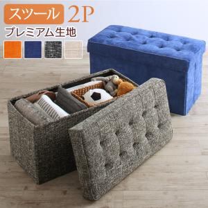スペース有効活用 収納付き リビングダイニング スツール プレミアム生地 2P