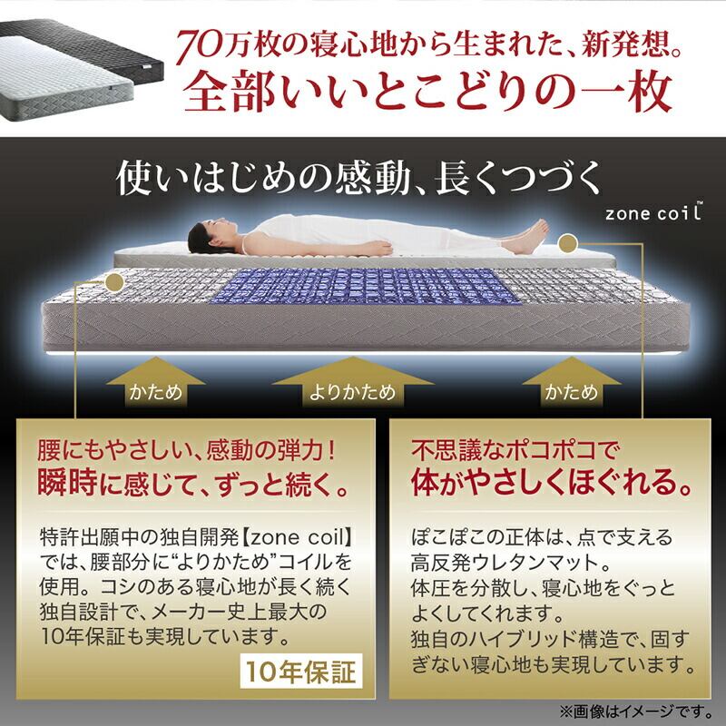 お客様組立 ベッド 棚コンセント 収納付き ゾーンコイルマットレス付き シングル