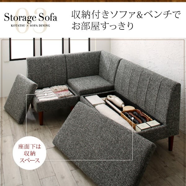 高さ調節可能 こたつ布団が納まる収納付ソファダイニング ダイニングこたつテーブル W105