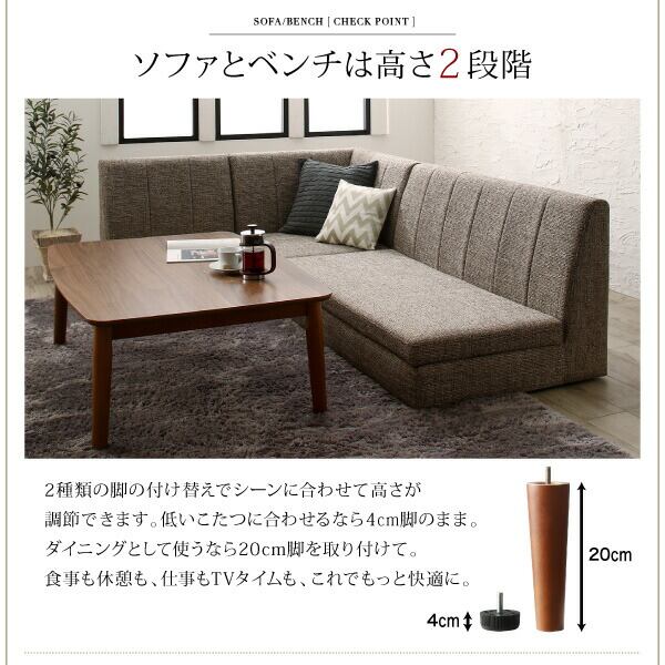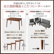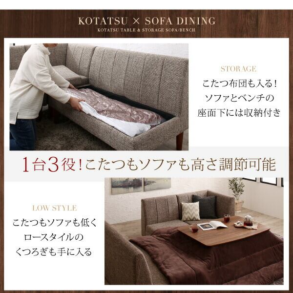 高さ調節可能 こたつ布団が納まる収納付ソファダイニング ダイニングこたつテーブル W135