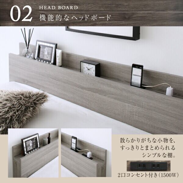 棚・コンセント付きデザインすのこベッド スタンダードポケットコイルマットレス付き シングル