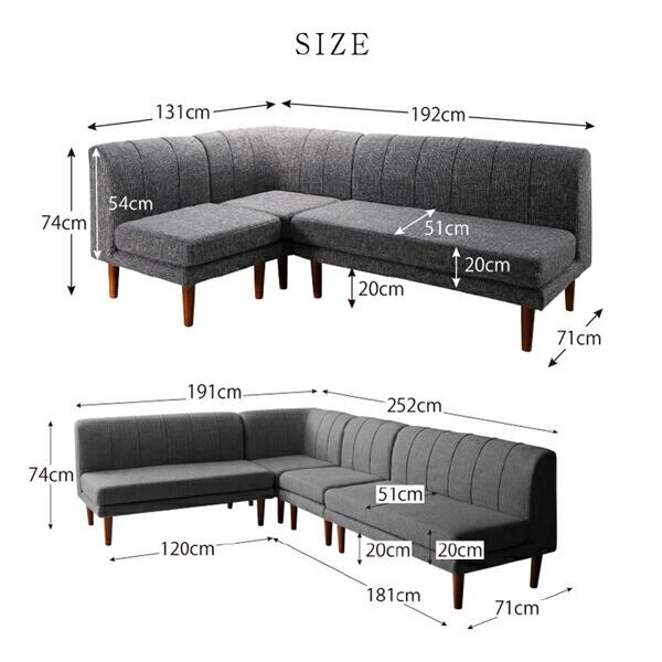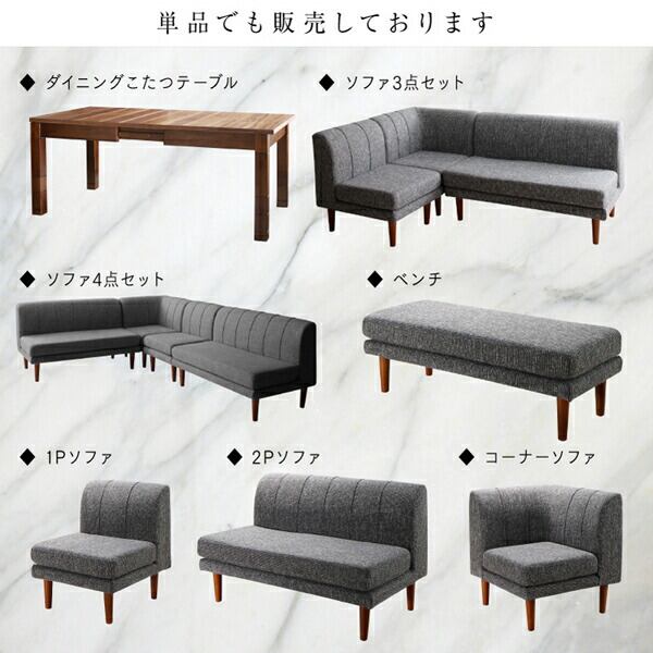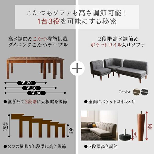 高さ調節可能 3段階伸長式 大型こたつソファダイニング 4点セット(2Pソファ2脚+1Pソファ1脚+コーナーソファ1脚) 1P×2+2P×2