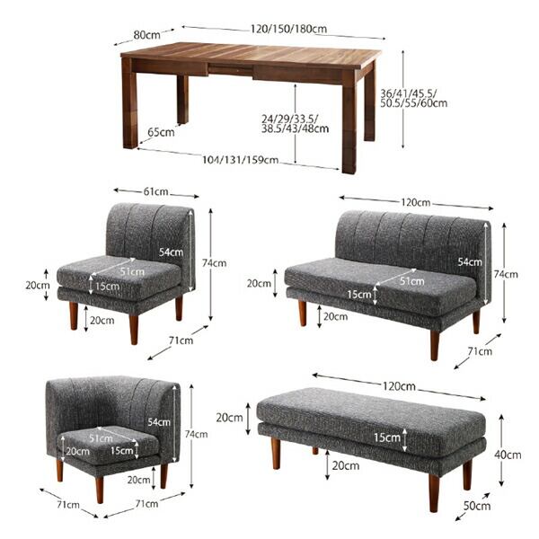 高さ調節可能 3段階伸長式 大型こたつソファダイニング ベンチ 2P