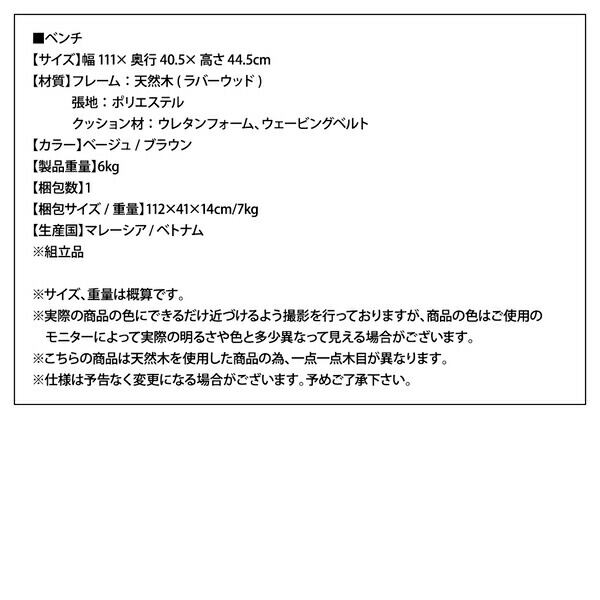 天然木と自然なカラー クッション材入り シンプルベンチ 2P