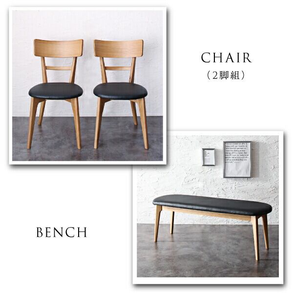 天然木オーク無垢材 モダンデザインダイニング 5点セット(テーブル+チェア4脚) W150
