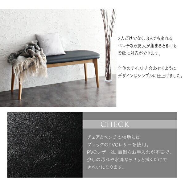 天然木オーク無垢材 モダンデザインダイニング ベンチ 2P