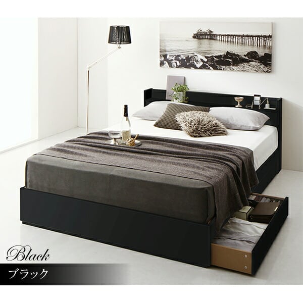 清潔に眠れる棚・コンセント付きすのこ収納ベッド ベッドフレームのみ ダブル