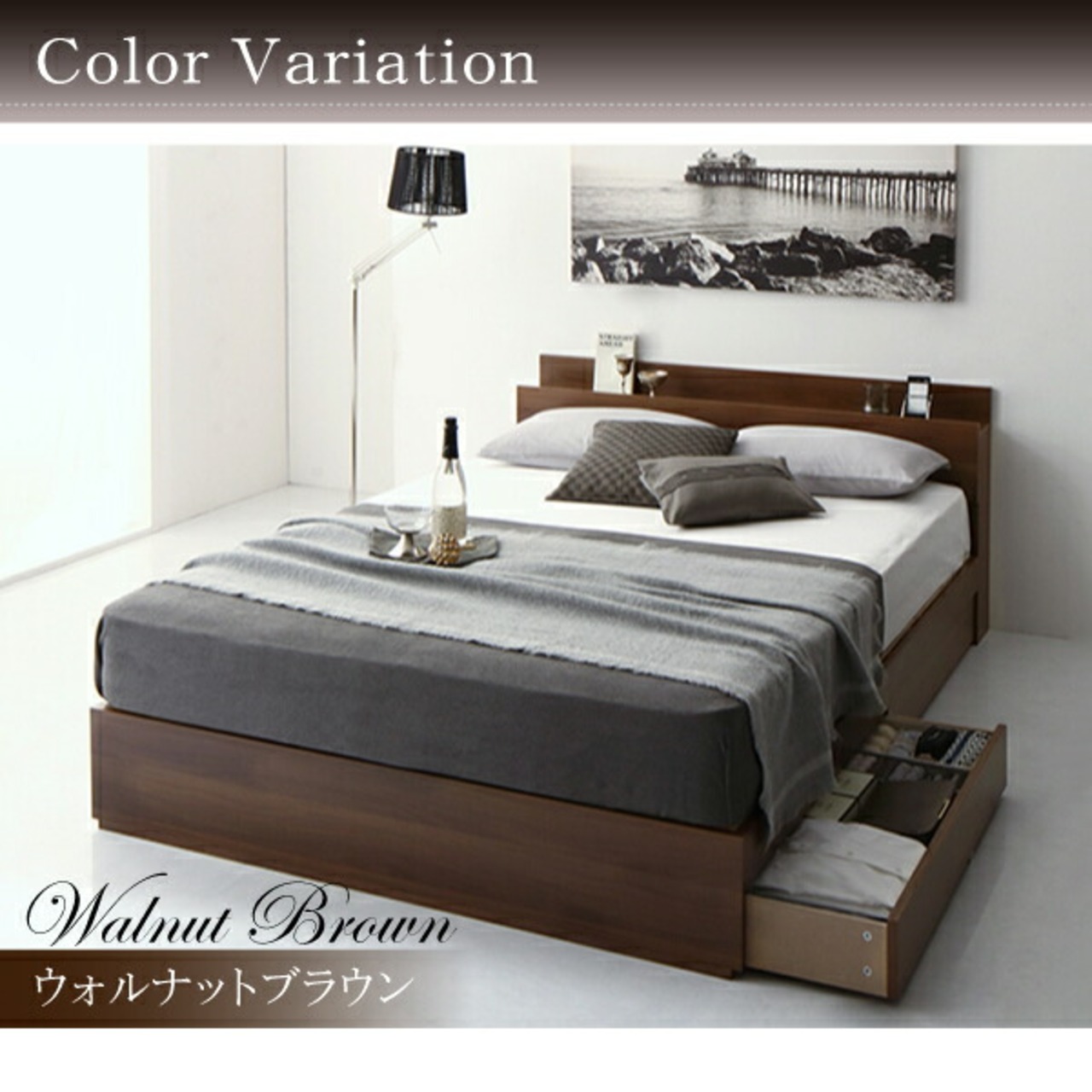 清潔に眠れる棚・コンセント付きすのこ収納ベッド スタンダードボンネルコイルマットレス付き ダブル
