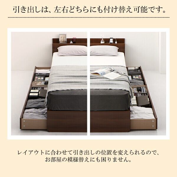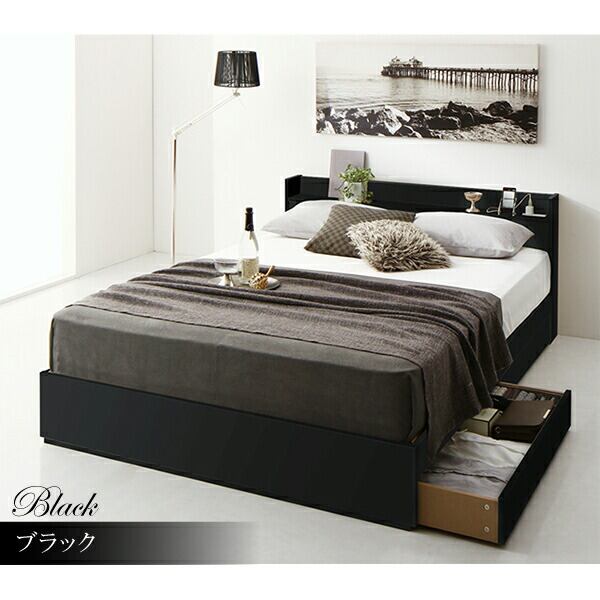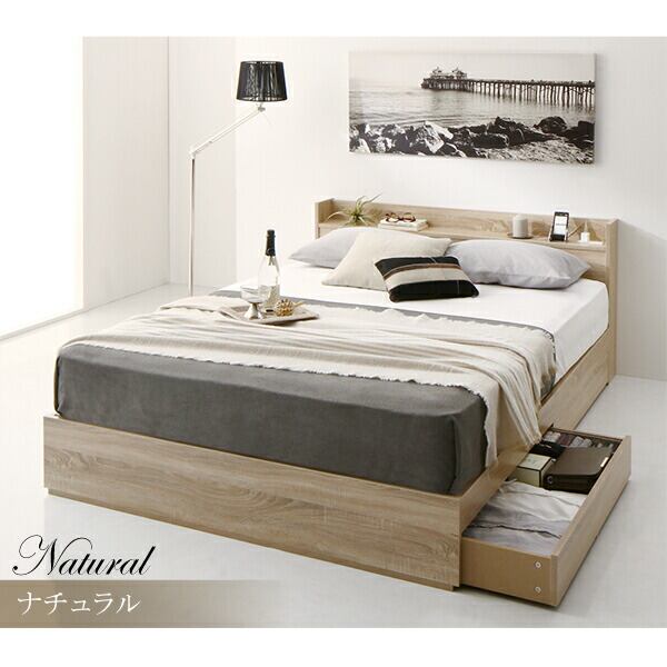 清潔に眠れる棚・コンセント付きすのこ収納ベッド プレミアムボンネルコイルマットレス付き ダブル