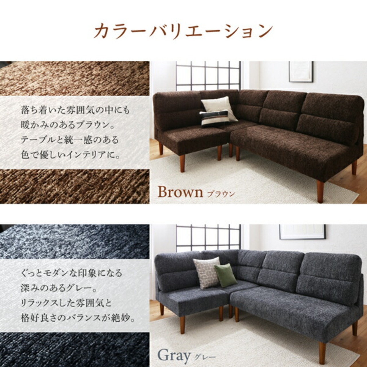 ダイニング4点セット(テーブル+2Pソファ1脚+1Pソファ1脚+コーナーソファ1脚) W135
