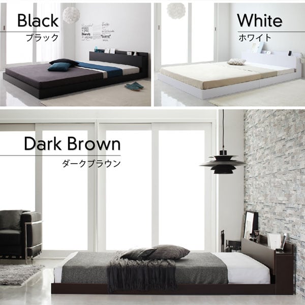 棚・コンセント付きフロアベッド スタンダードボンネルコイルマットレス付き ダブル