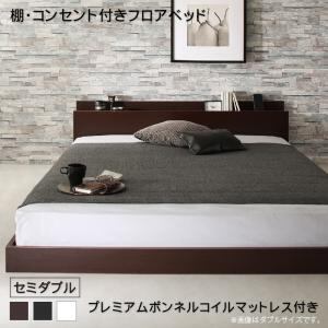 棚・コンセント付きフロアベッド プレミアムボンネルコイルマットレス付き セミダブル