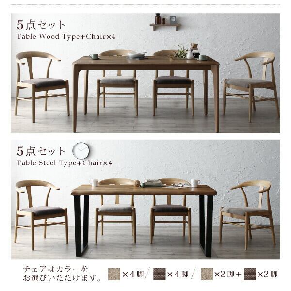 選べる無垢材テーブル デザインチェアダイニング 5点セット(テーブル+チェア4脚) W150