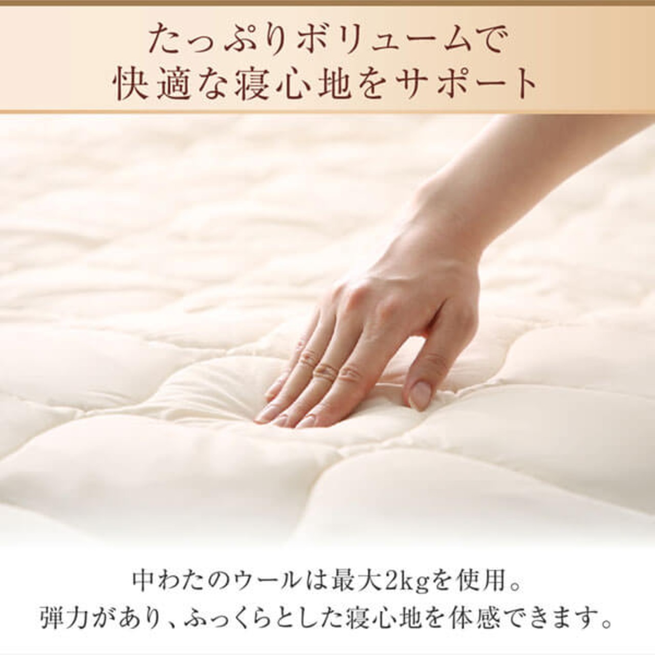 洗える・100%ウールの日本製ベッドパッド ダブル