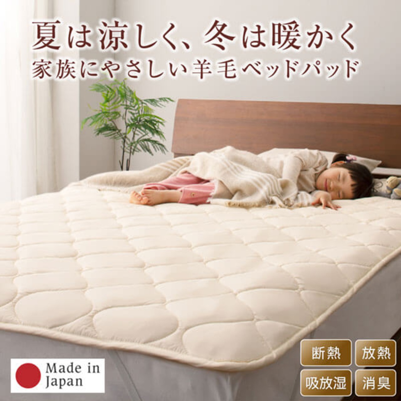 洗える・100%ウールの日本製ベッドパッド キング