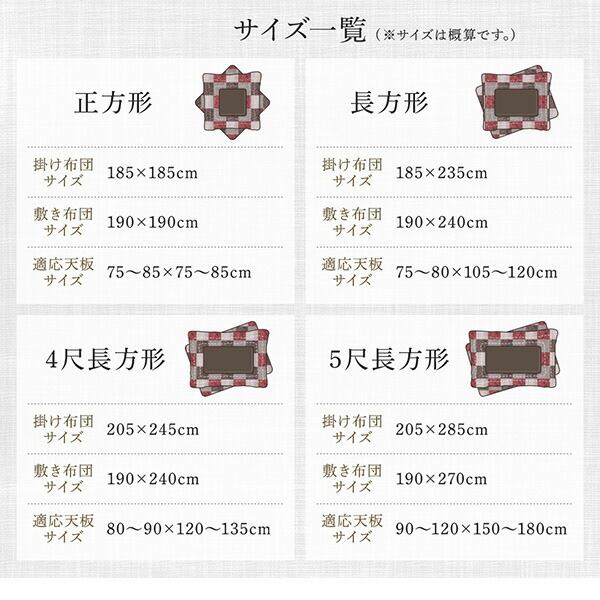 こたつ用掛け布団単品 4尺長方形(80×120cm)天板対応