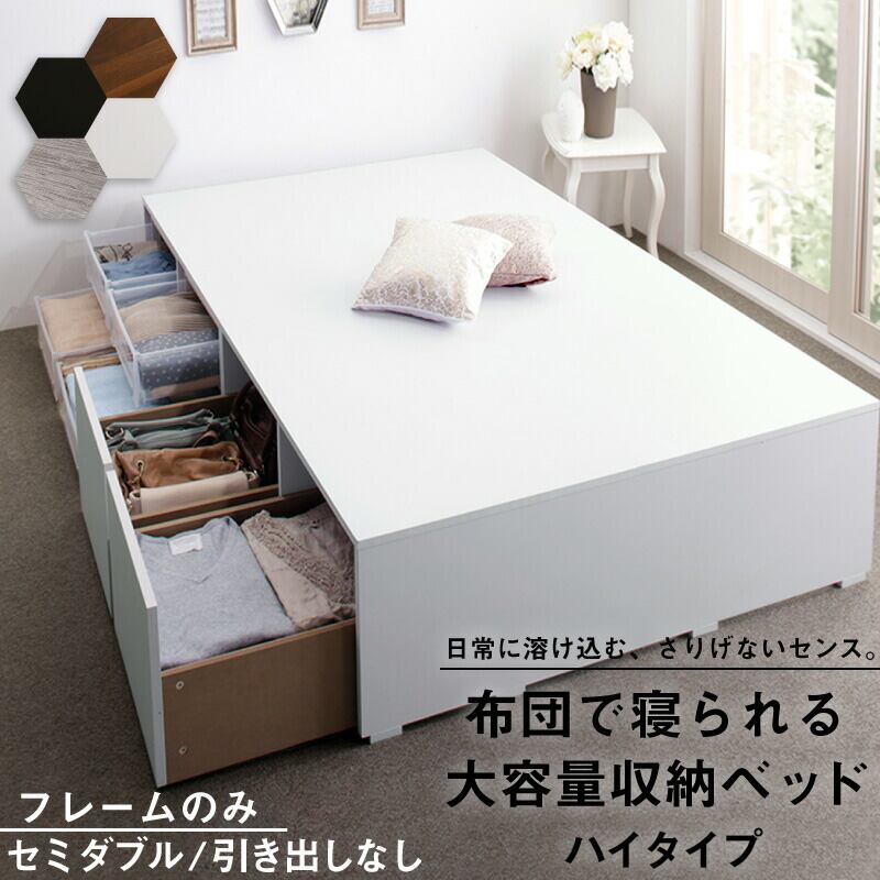 ベッド チェストベッド 大容量収納ベッド ベッドフレームのみ ハイタイプ 引き出しなし セミダブル