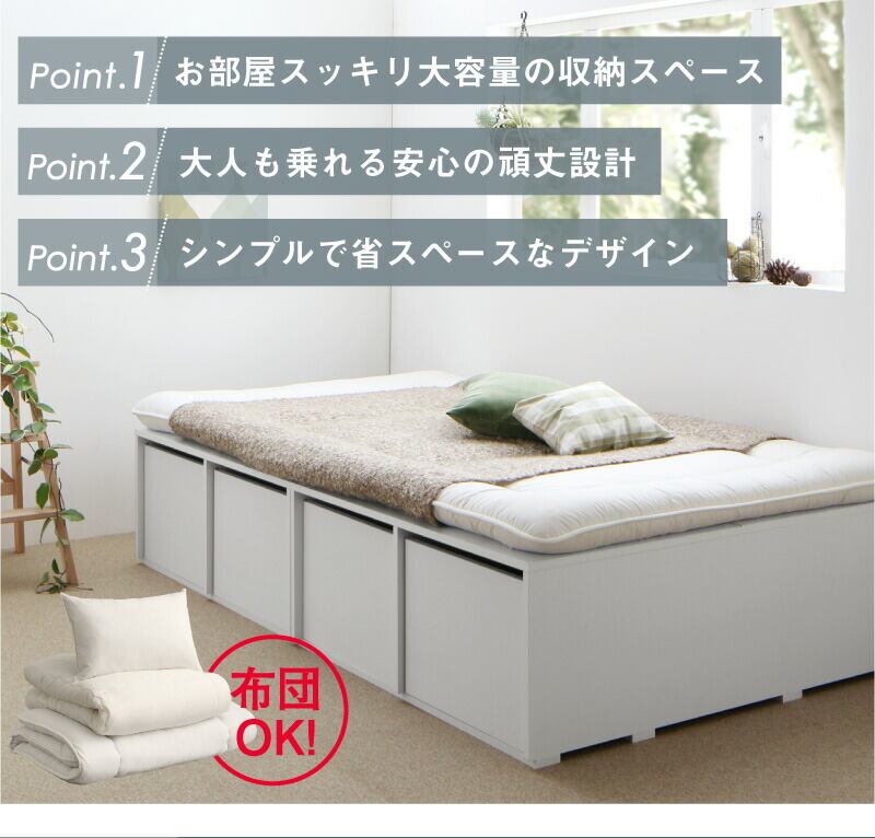 ベッド チェストベッド 大容量収納ベッド 薄型スタンダードボンネルコイルマットレス付き ハイタイプ 引き出しなし シングル
