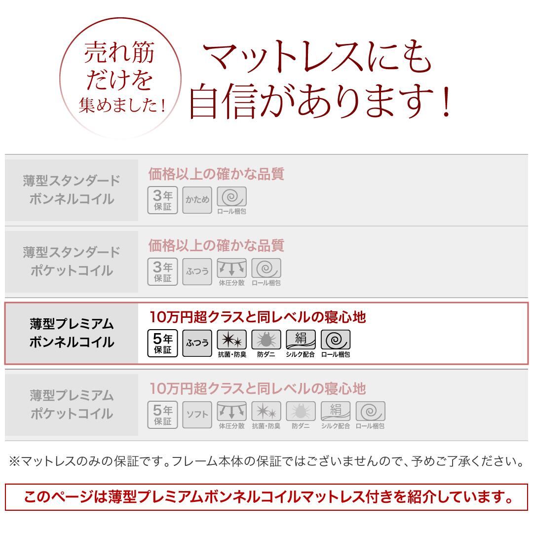 薄型プレミアムボンネルコイルマットレス付き ハイタイプ 引き出し2杯 シングル