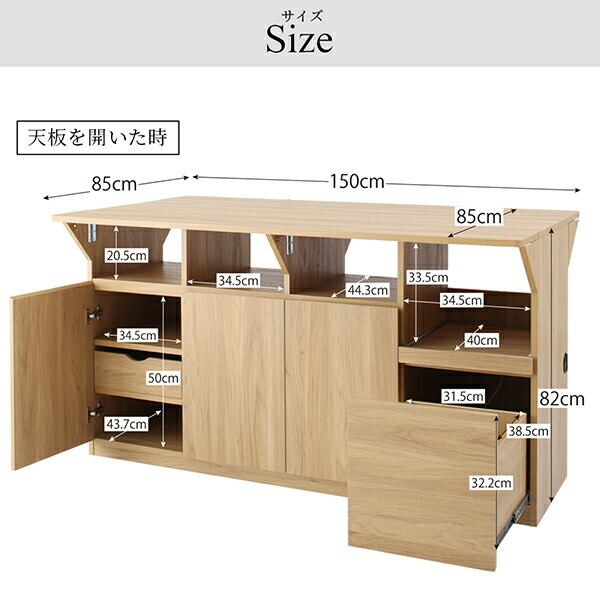 キッチン収納・作業台・テーブルになる1台3役のワイドバタフライキッチンカウンター 幅150