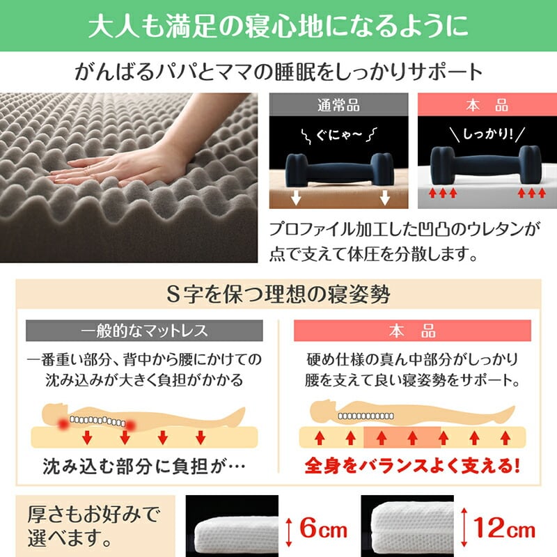 厚さが選べる 高通気・抗菌防臭 ファミリーマットレス敷き布団 ワイドK300 厚さ12cm