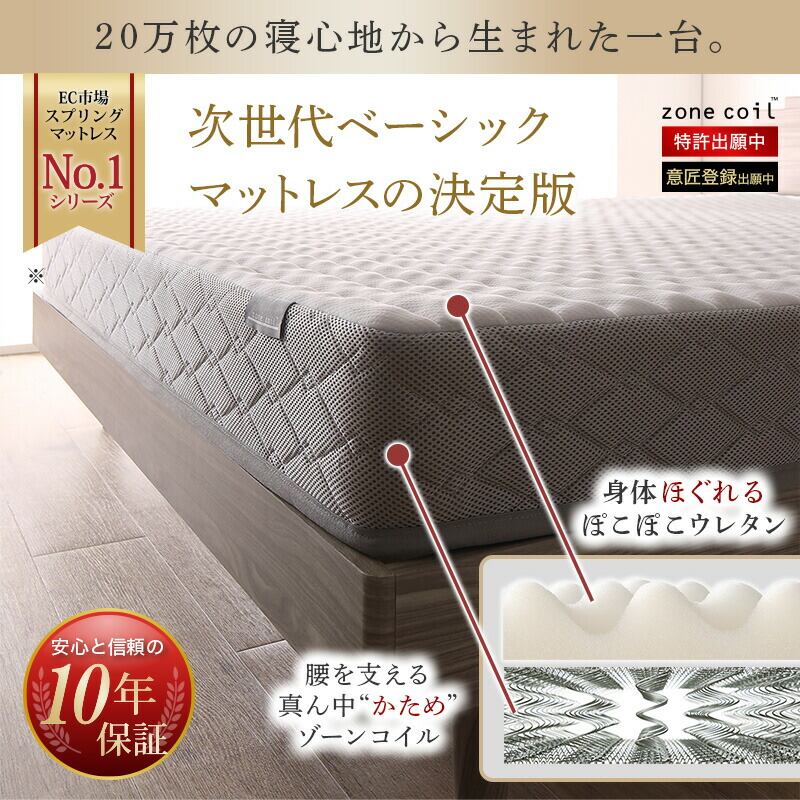 お客様組立/無垢すのこデザインベッド ゾーンコイルマットレス付 ダブル