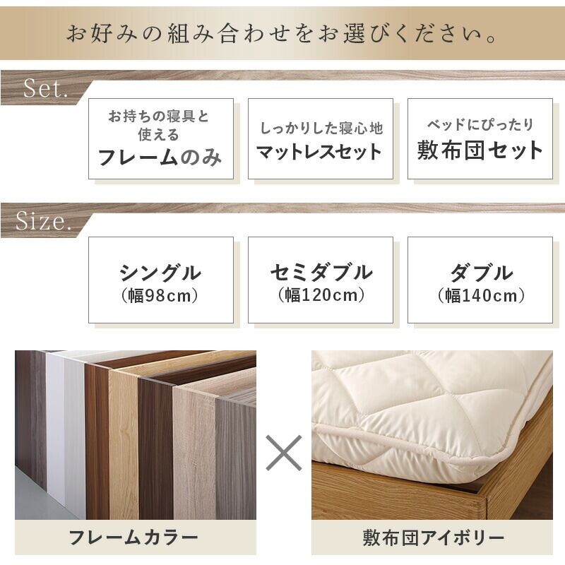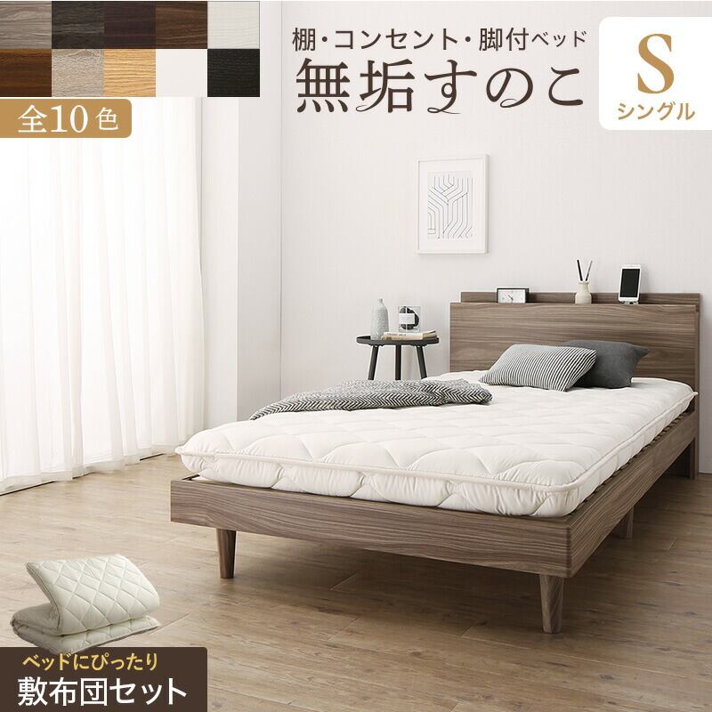お客様組立/無垢すのこデザインベッド 敷布団付 シングル