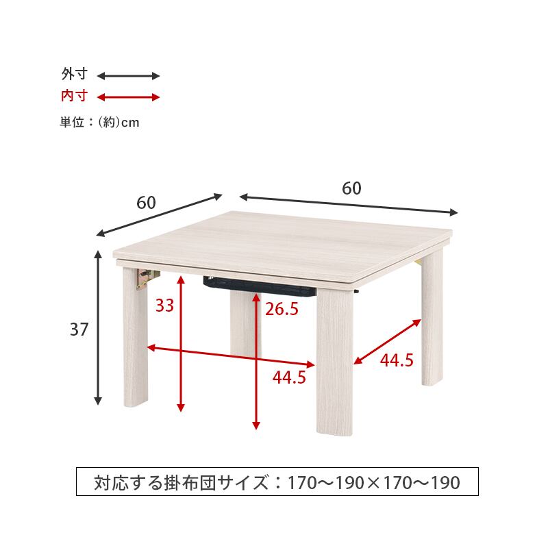 カジュアルコタツ(折脚)-天板リバーシブル 60×60cm
