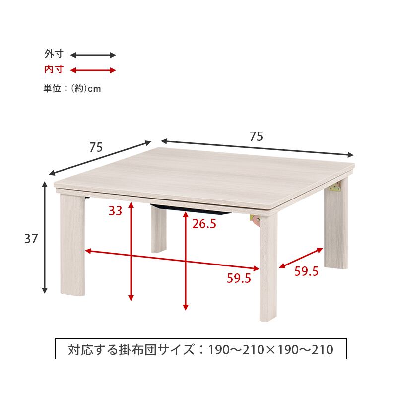 カジュアルコタツ(折脚)-天板リバーシブル 75×75cm