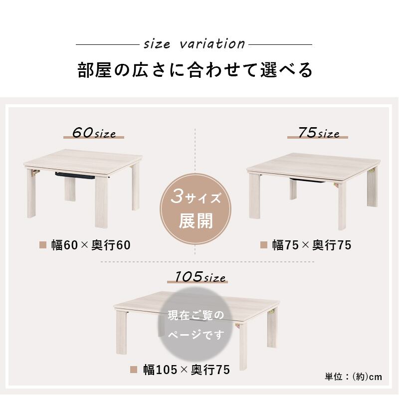 カジュアルコタツ(折脚)-天板リバーシブル 105×75cm