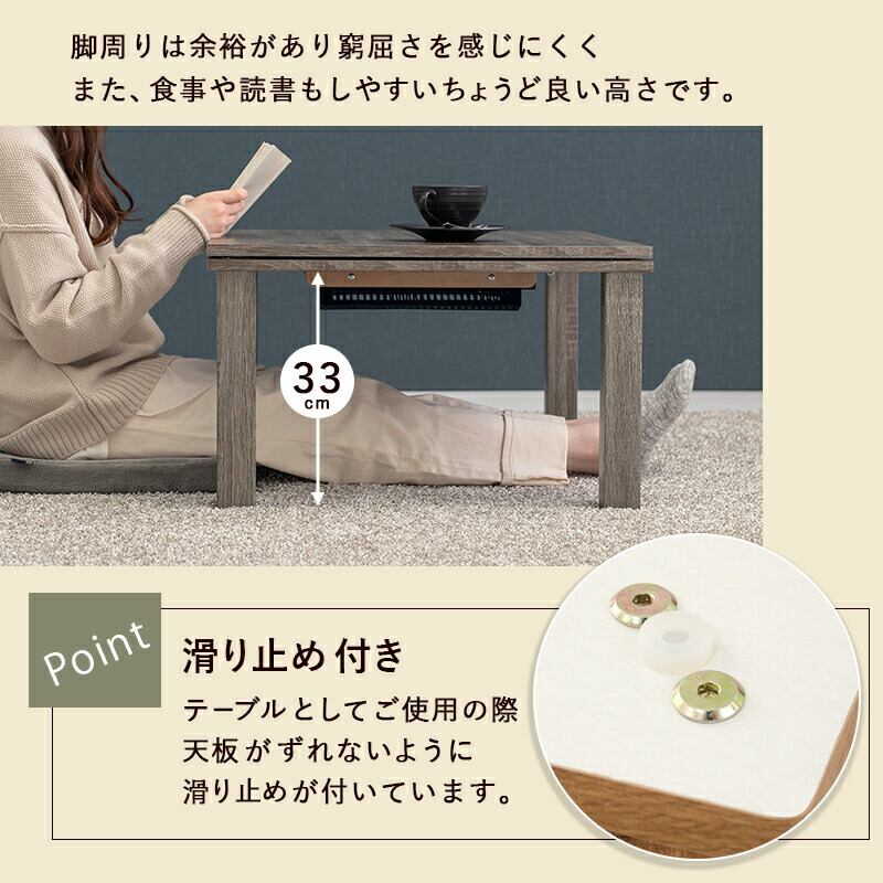 カジュアルコタツ-天板ウッド 75×60cm