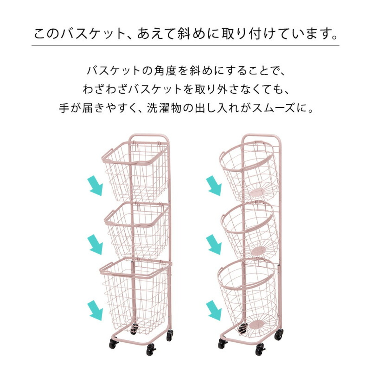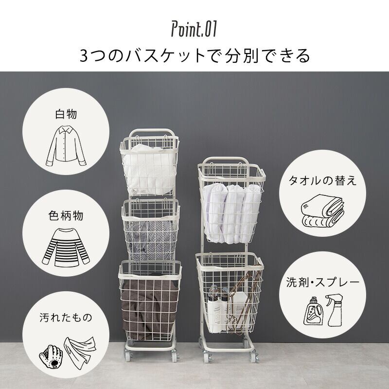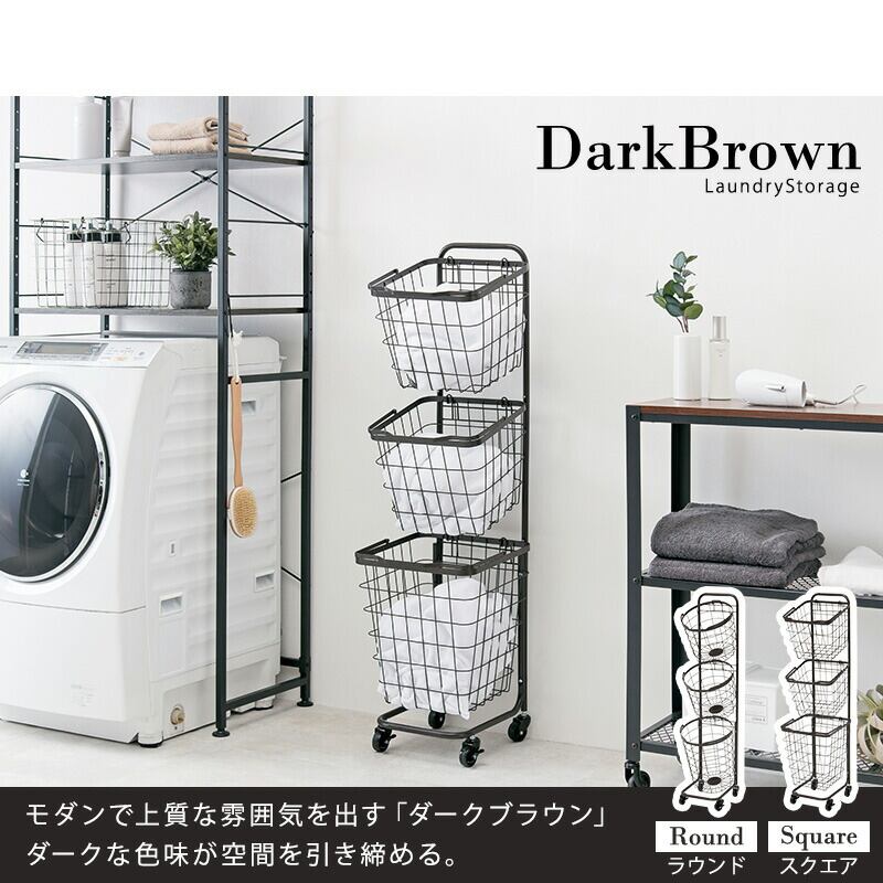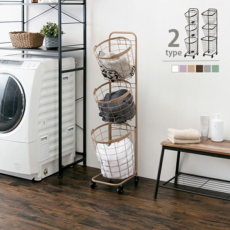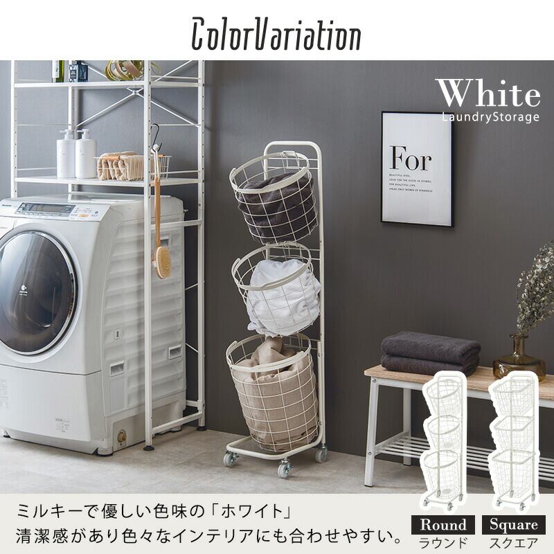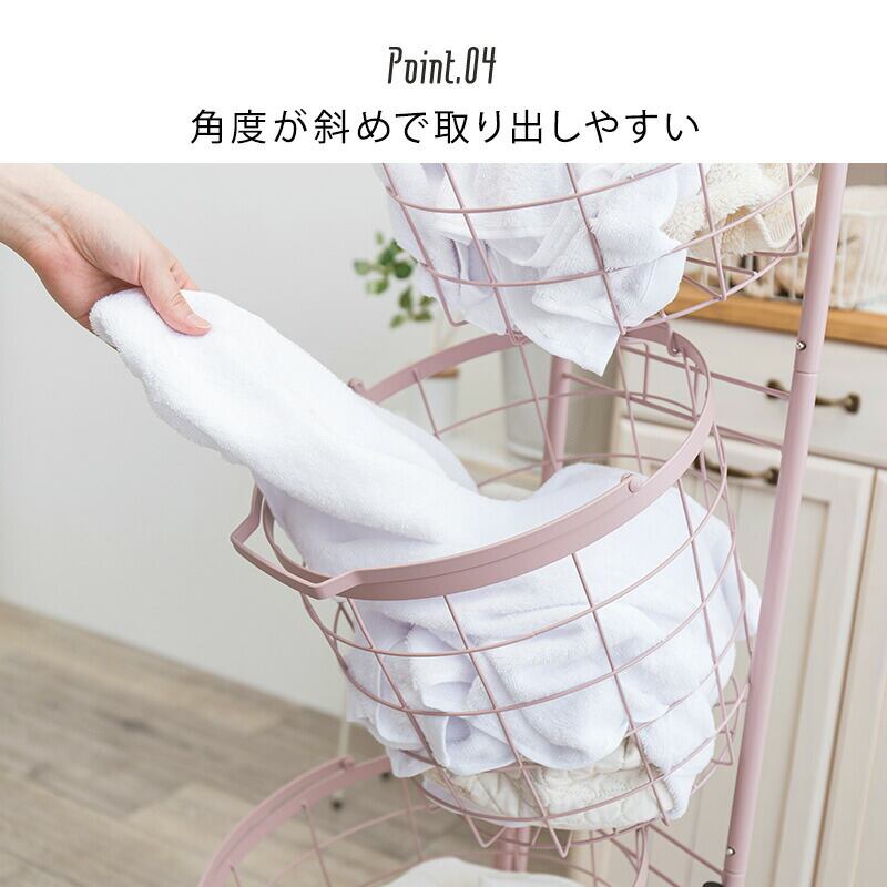 3段ランドリーラック(丸型) 34.5×39×124cm