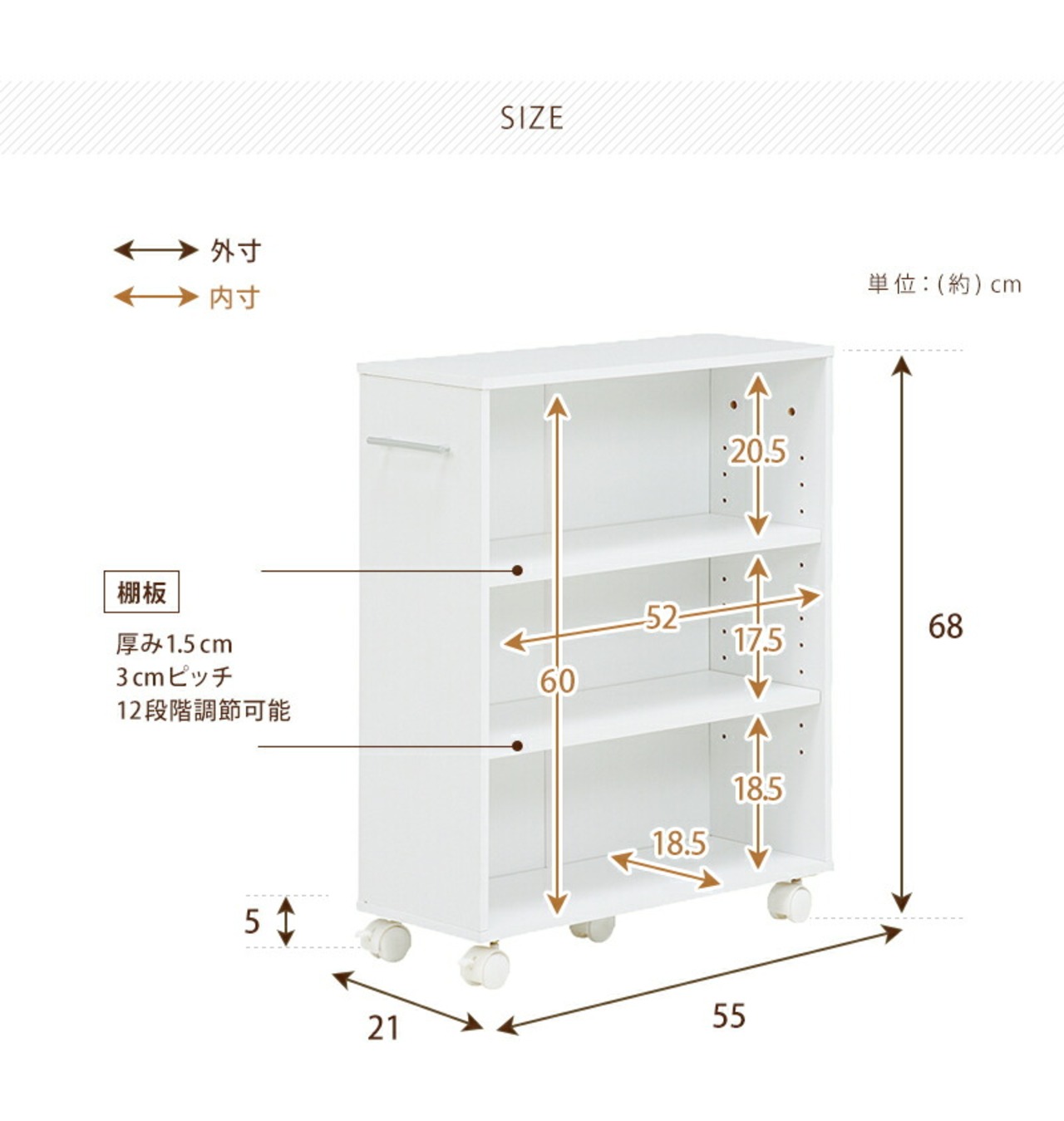 マガジンラック 奥行21cm×高さ68cm 55×21×68cm