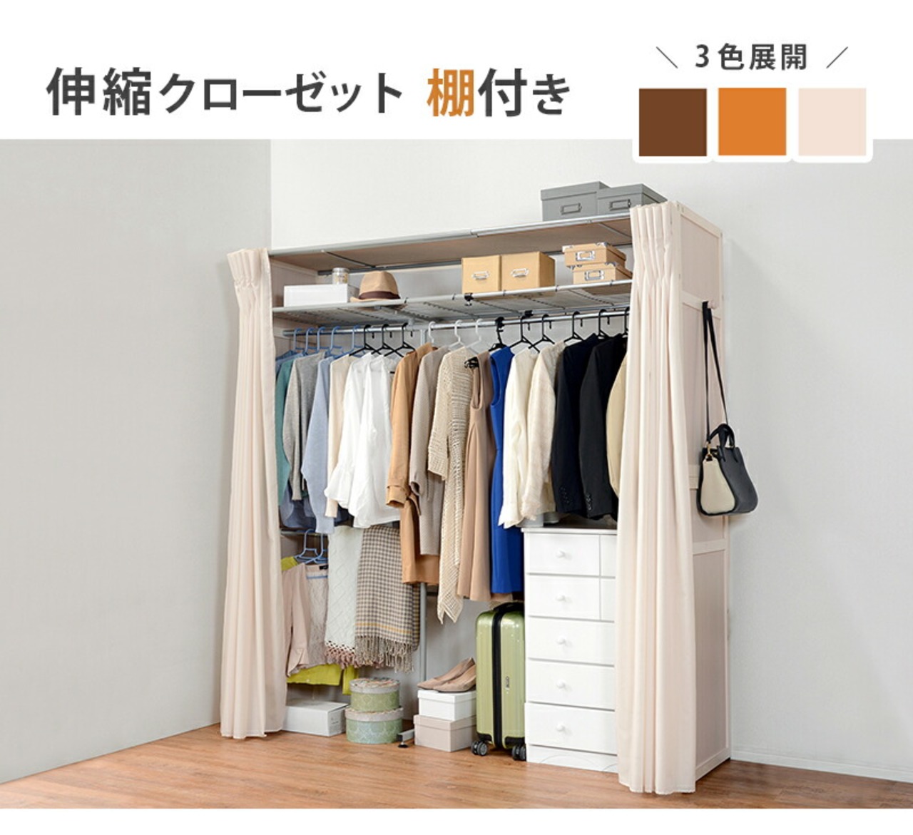 伸縮クローゼット-VR-上棚付き 115×55×194cm