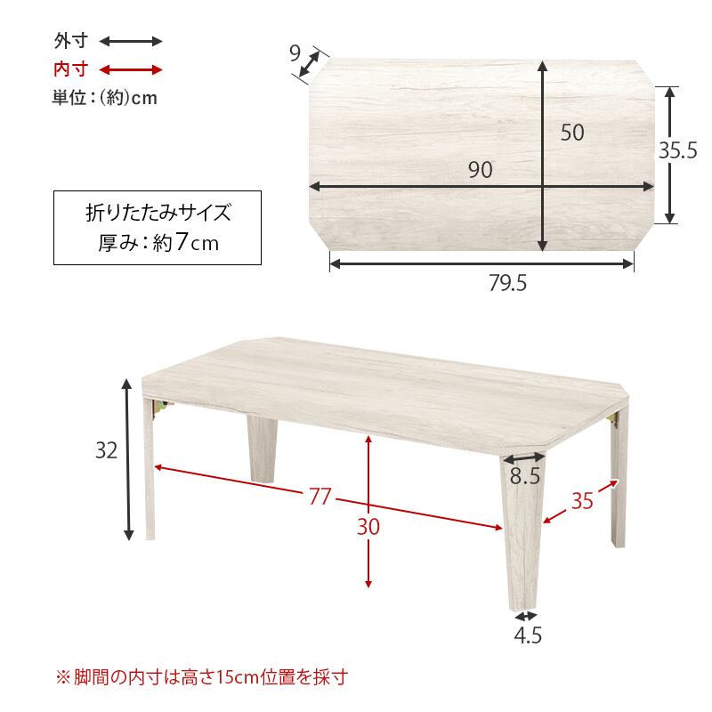 折れ脚テーブル-MT-天板八角形 90×50×32cm