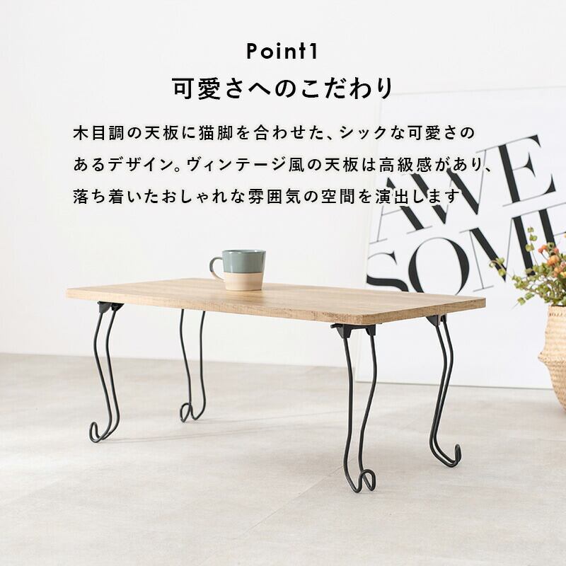 折れ脚テーブル 幅80cm 角型 80×40×33cm