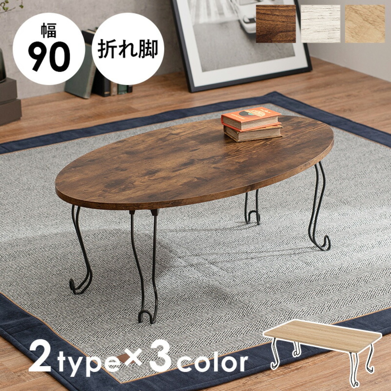 折れ脚テーブル 幅90cm 丸型 90×50×33cm