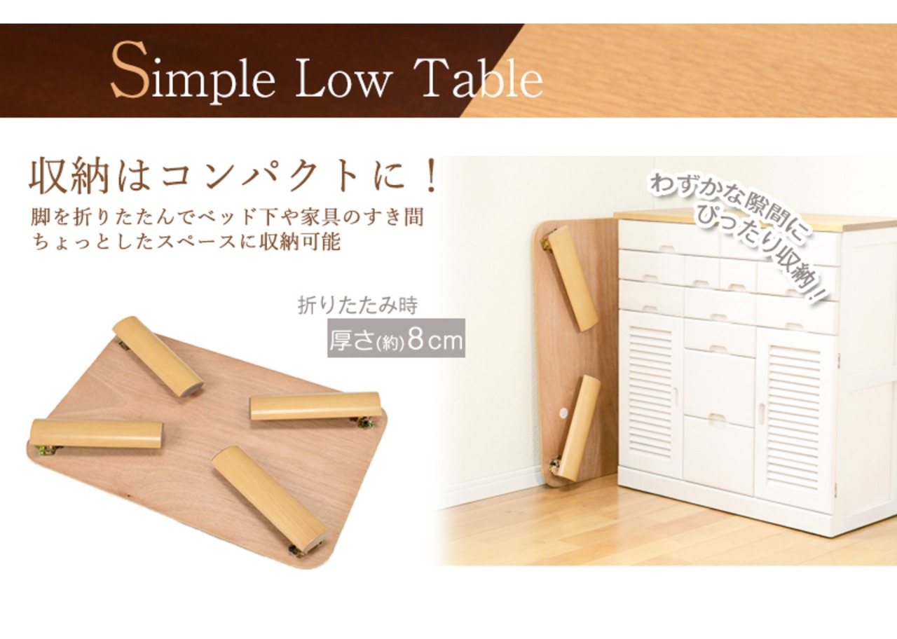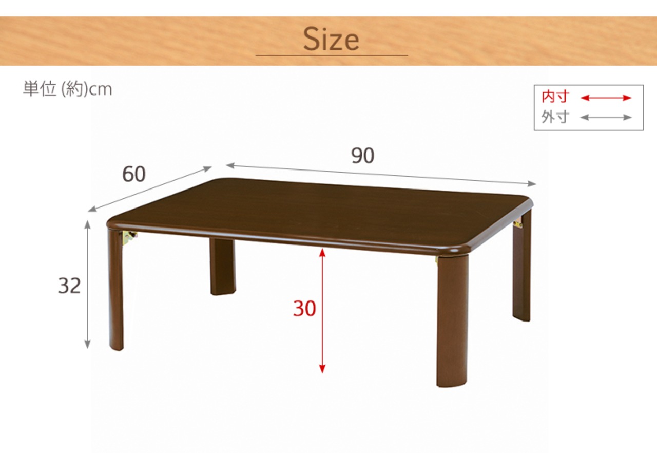 折れ脚テーブル コンパクト収納 90×60×32cm