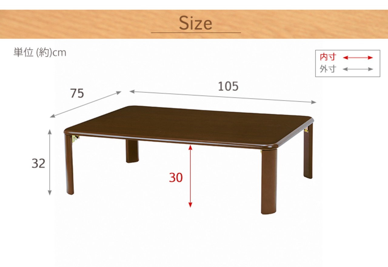 折れ脚テーブル コンパクト収納 105×75×32cm