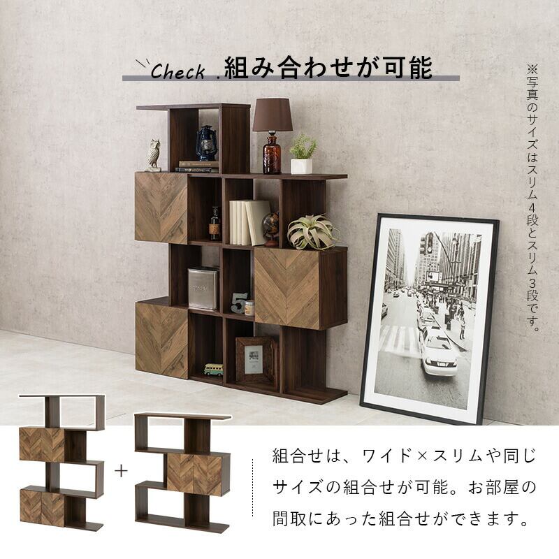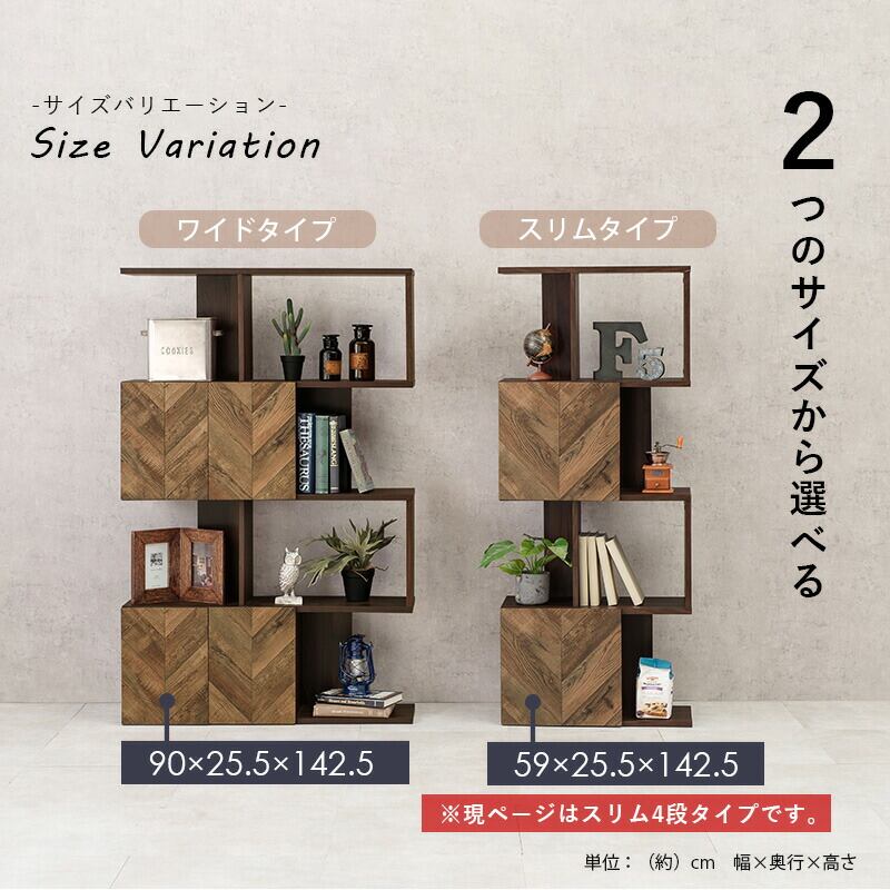 扉付きオープンラック 4段タイプ スリムタイプ 59×25.5×142.5cm