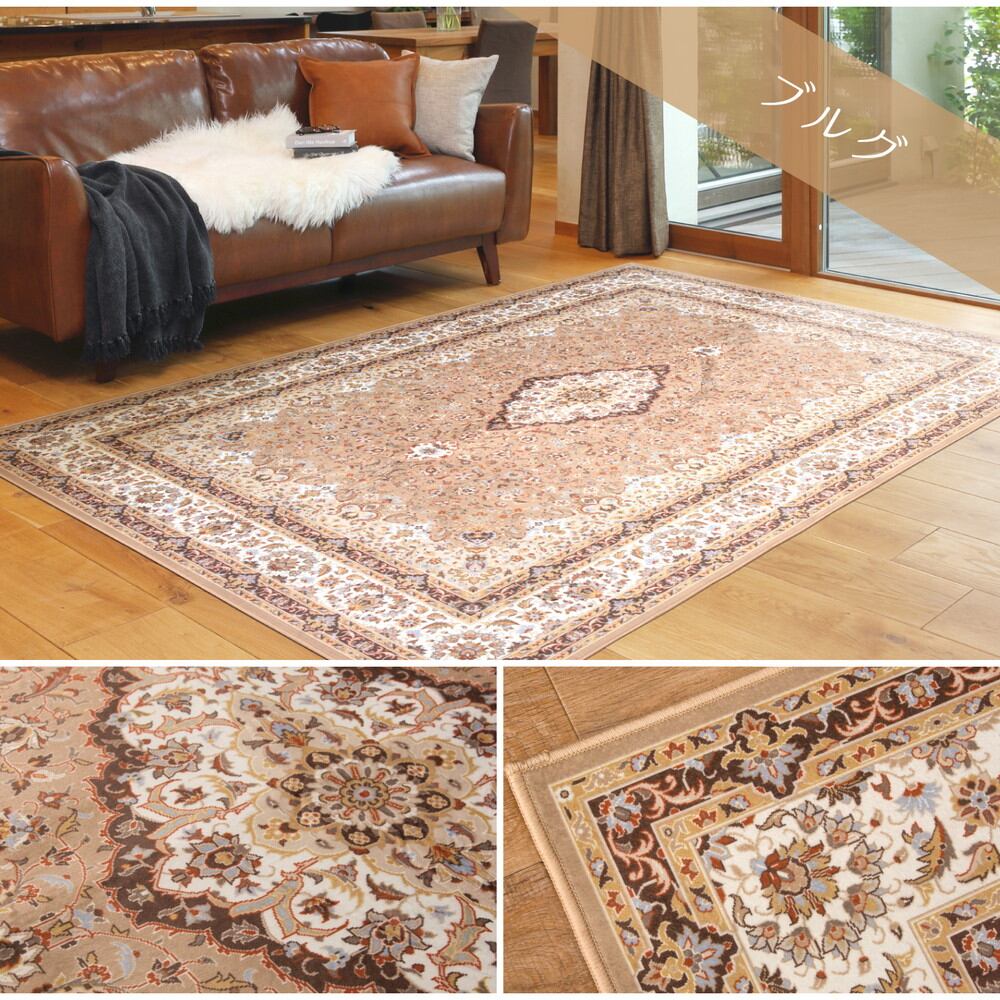 撥水機能付き 高級絨毯風の転写プリントラグ 200×200cm