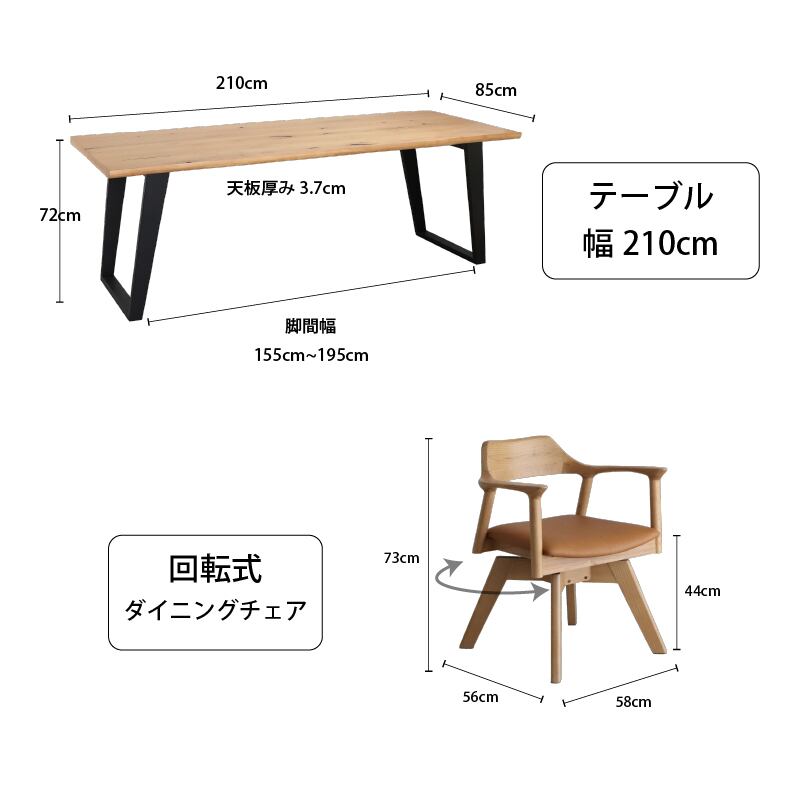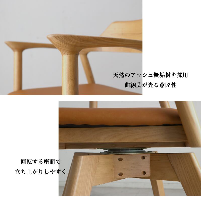 天然木 一枚板風 回転チェア