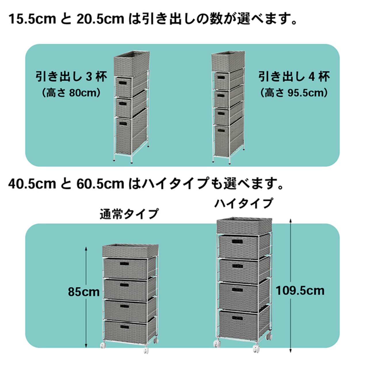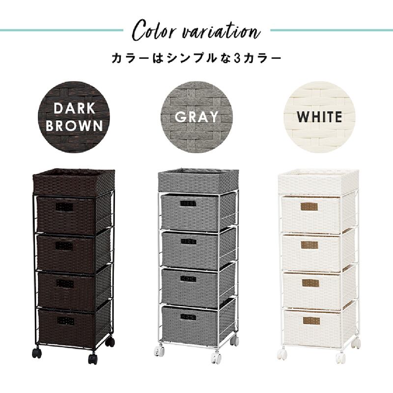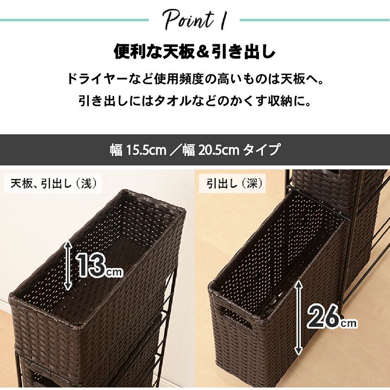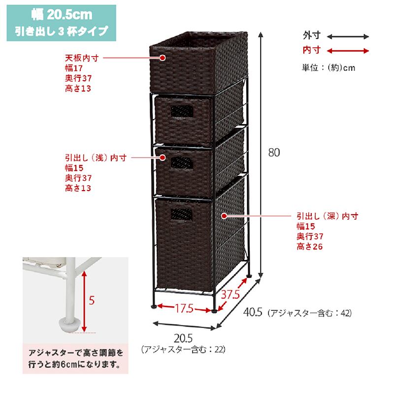 すき間に合わせて選べる ラタン調ランドリーラック 幅20.5cm 高さ80cm 引き出し3段