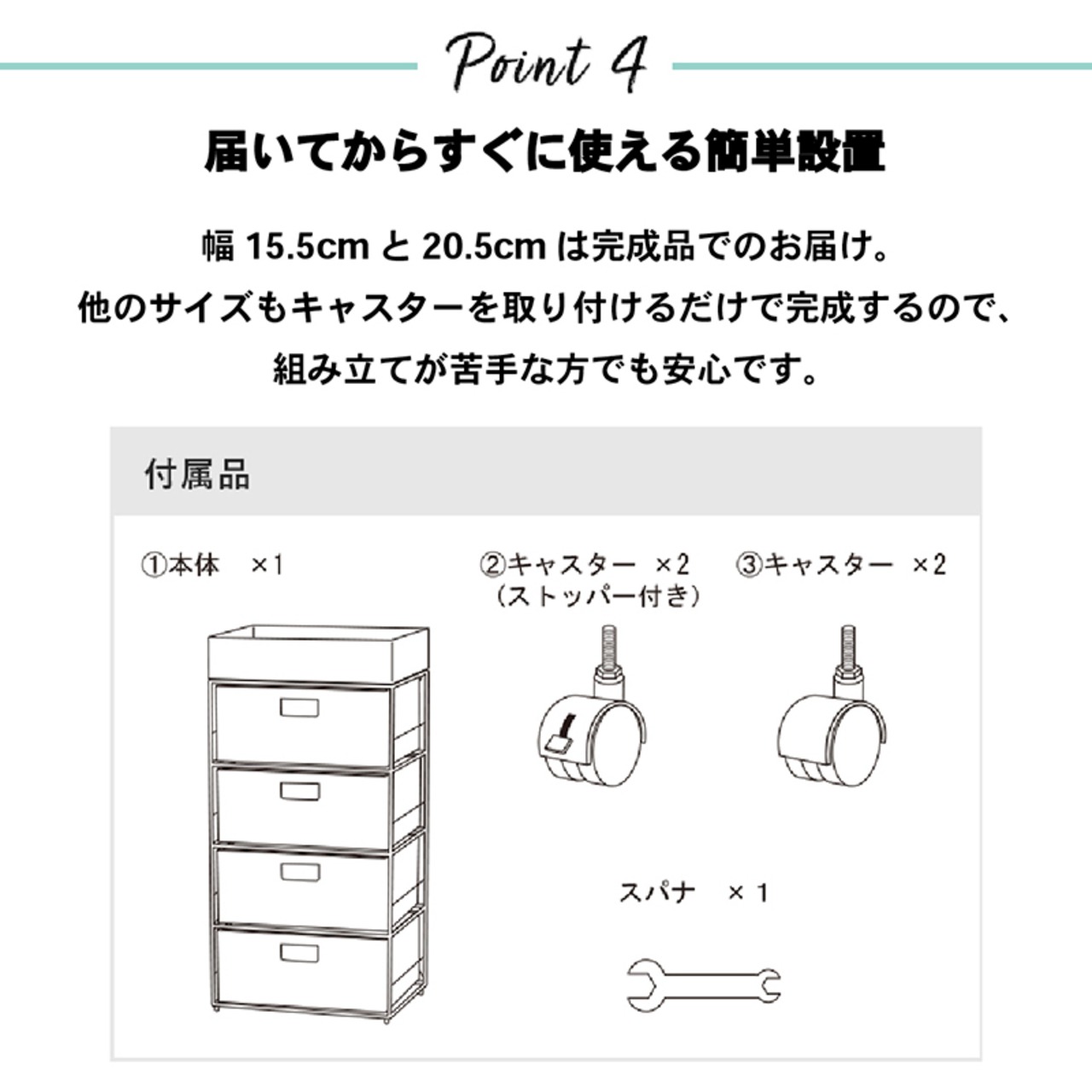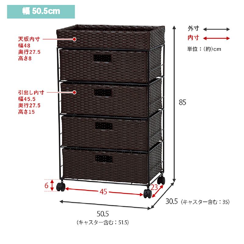 すき間に合わせて選べる ラタン調ランドリーラック 幅50.5cm 高さ85cm 引き出し4段